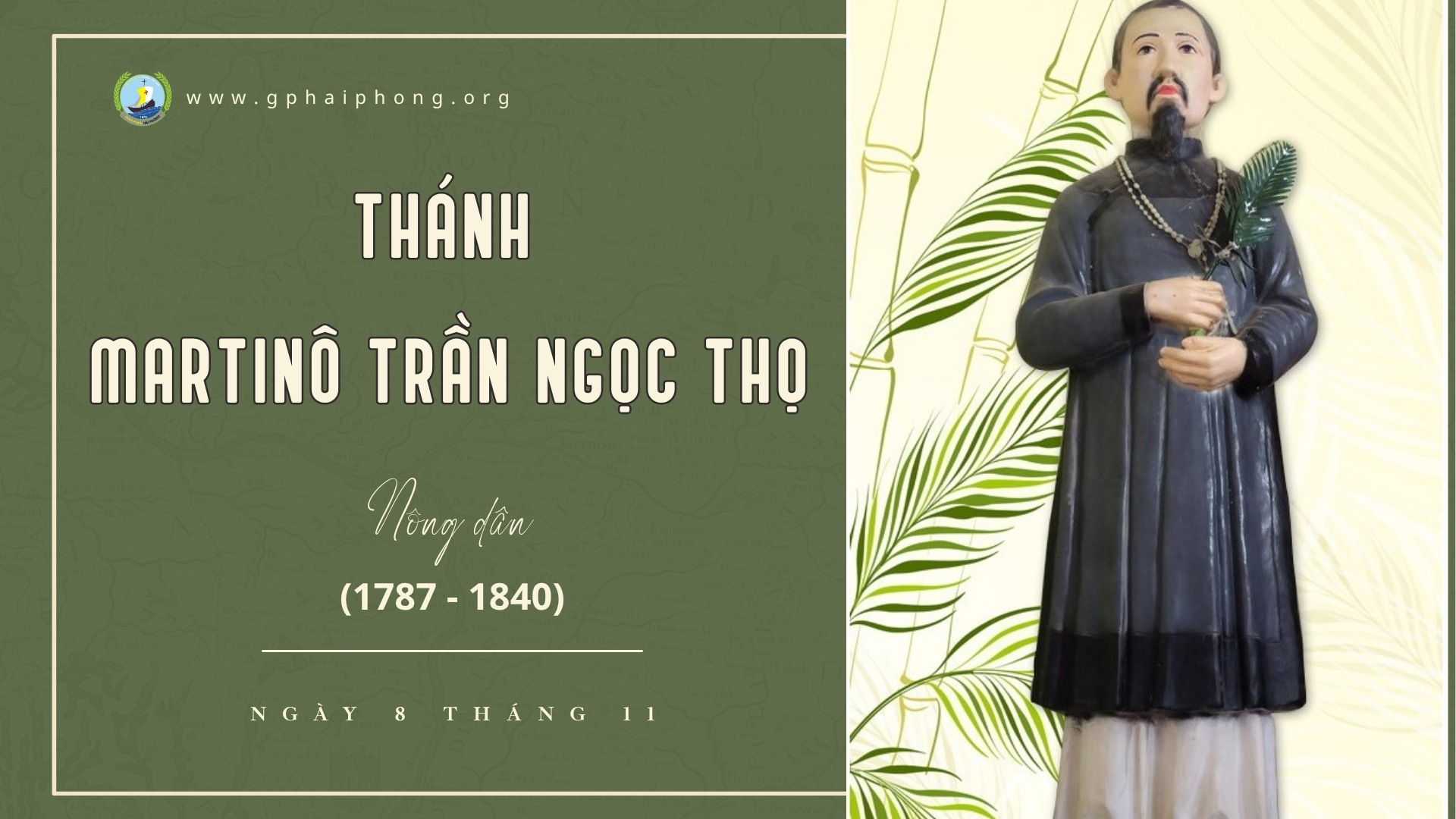 Thánh Martinô Trần Ngọc Thọ sinh năm 1787 tại làng Kẻ Báng, huyện Vụ Bản, tỉnh Nam Định. Ông tên thật là Nho, tên Thọ là tên của người con thứ chín.