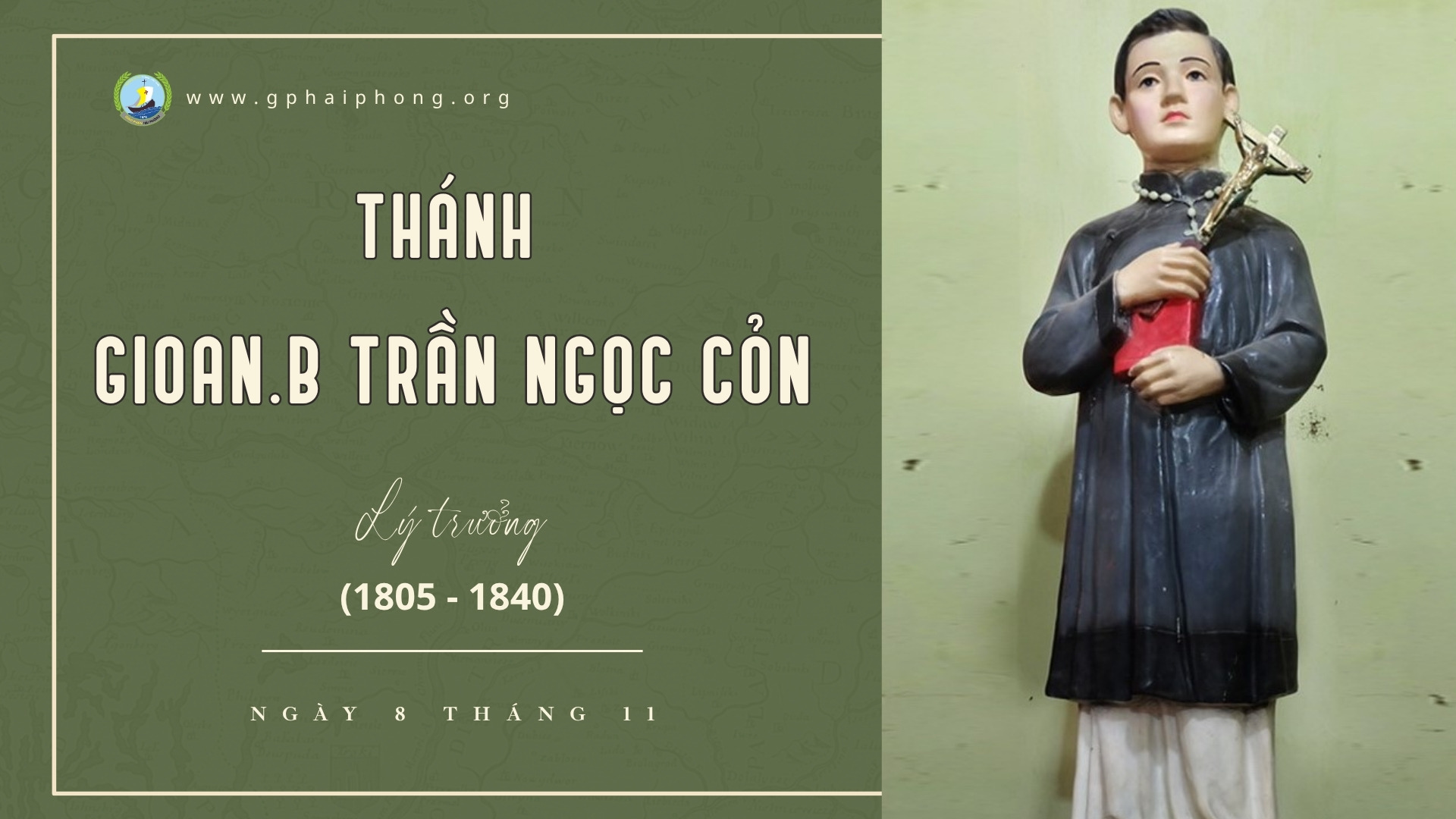 Thánh Gioan Baotixita Trần Ngọc Cỏn sinh năm 1805 tại làng Kẻ Báng, huyện Vụ Bản, tỉnh Nam Định. Dù Thánh Cỏn sinh sống đạm bạc bằng nghề nông, nhưng gia đạo vẫn luôn thuận hòa êm ấm.