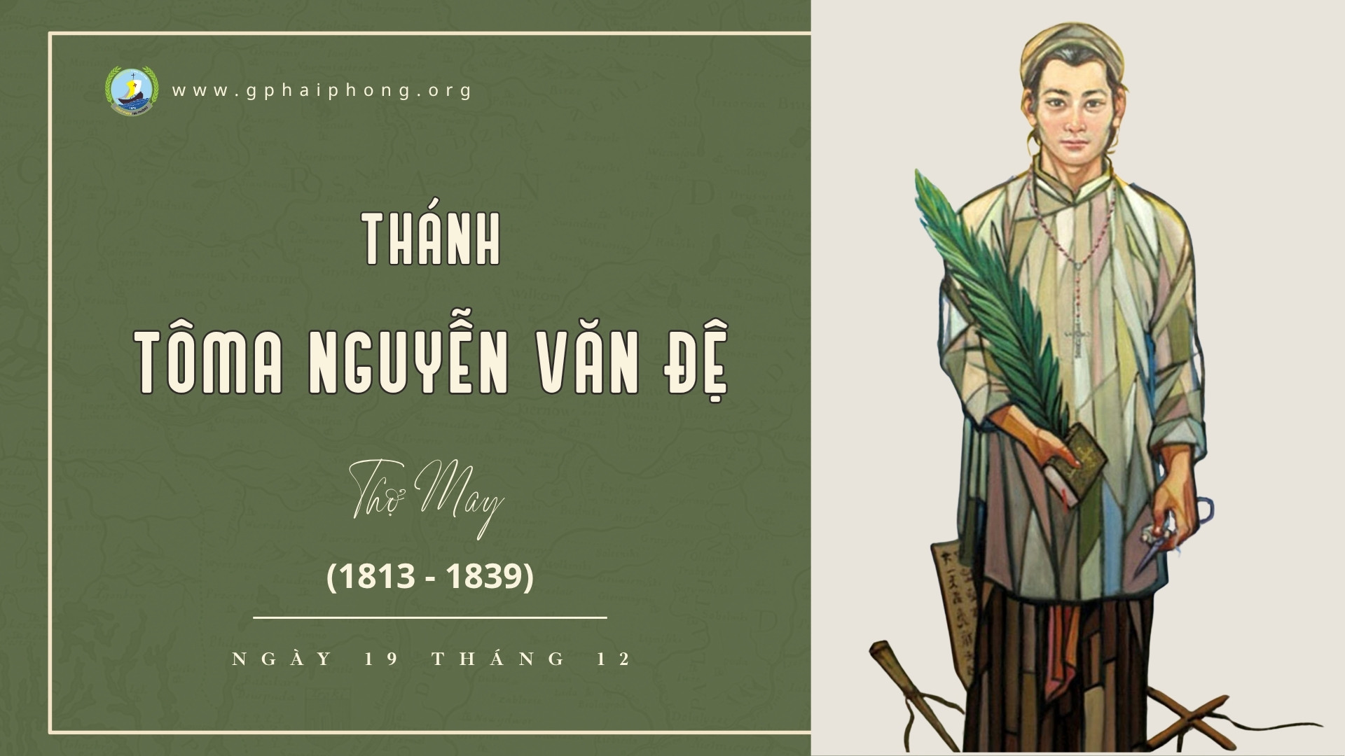Vị chứng nhân đức tin thợ may Tôma Nguyễn Văn Ðệ được nâng lên hàng chân phước ngày 27-5-1900 và được tôn phong hiển thánh ngày 19-6-1988.