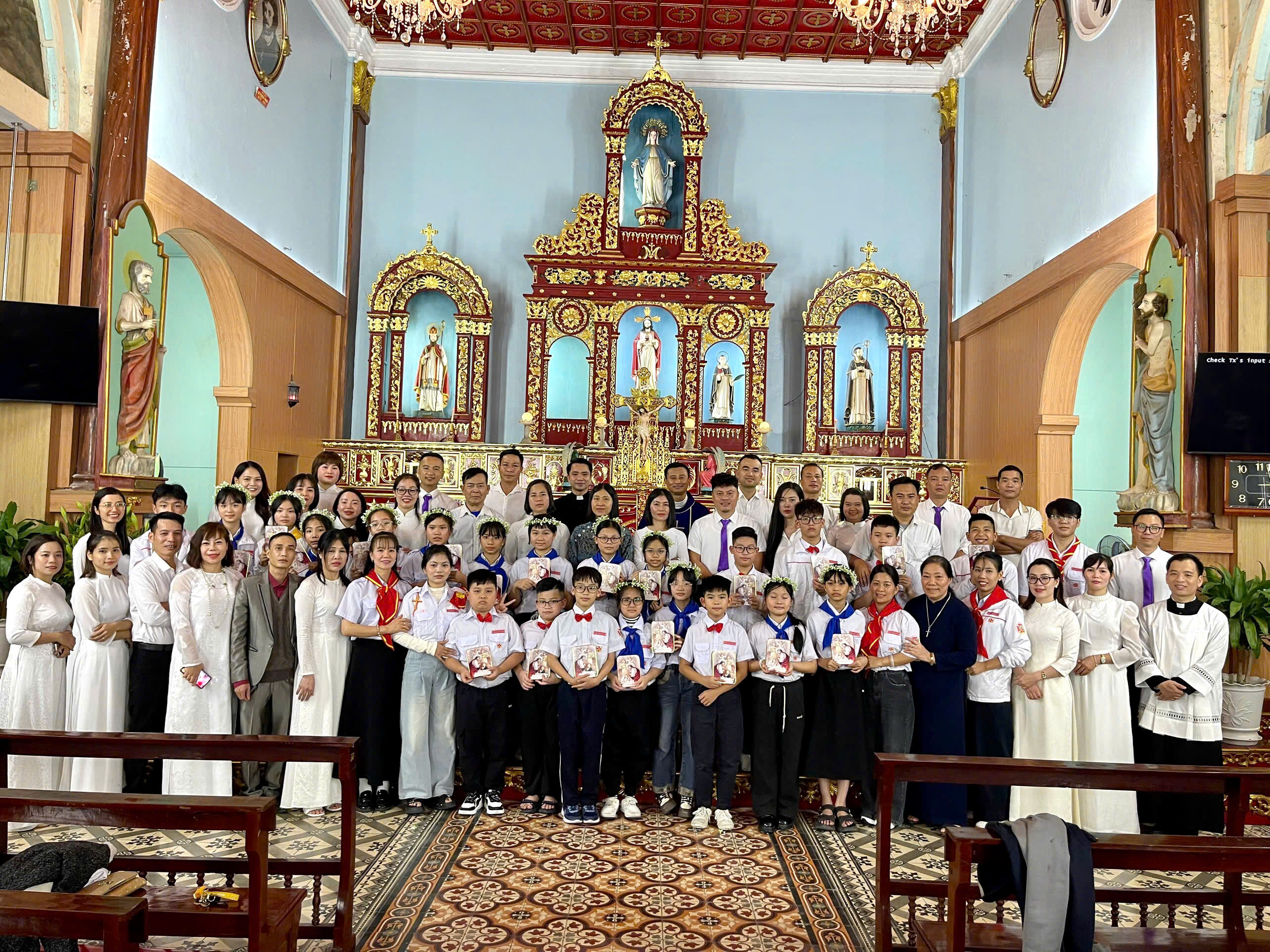 Niềm vui ngày lễ càng được nhân lên khi có 22 em Thiếu Nhi được Rước lễ. Lần đầu tiên được đón Chúa Giêsu Thánh Thể vào tâm hồn, các em đã trở nên những “nhà tạm sống động” giữa đời. Hình ảnh ngọn nến trắng mà các em sốt sắng tiến lên bàn tiệc Thánh Thể trở thành một dấu chỉ sống động về đức tin đang lớn lên và lan tỏa trong cộng đoàn.
