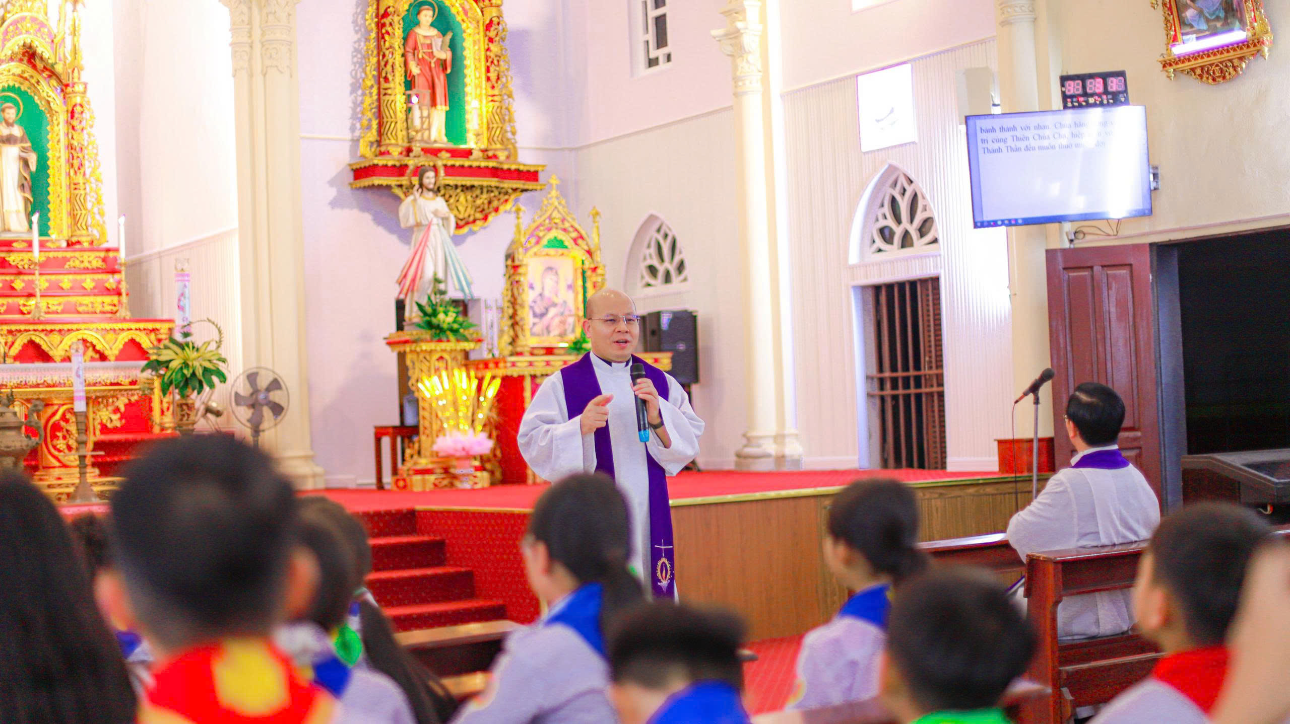 Trong Thánh lễ, qua bài Tin Mừng, cha đã gợi lại hình ảnh viên sĩ quan đến xin Đức Giêsu chữa lành cho con mình. Với lời thưa: “Thưa Ngài, xin Ngài xuống cho, kẻo cháu nó chết mất!”, ông đã đặt trọn niềm tin vào lời Chúa khi được đáp lại: “Ông cứ về đi, con ông sống.” Từ đó, cộng đoàn được mời gọi sống niềm tin vào Thiên Chúa trong đời sống hằng ngày, nhận ra sự hiện diện của Ngài qua những người thân cận như cha mẹ, anh chị em.