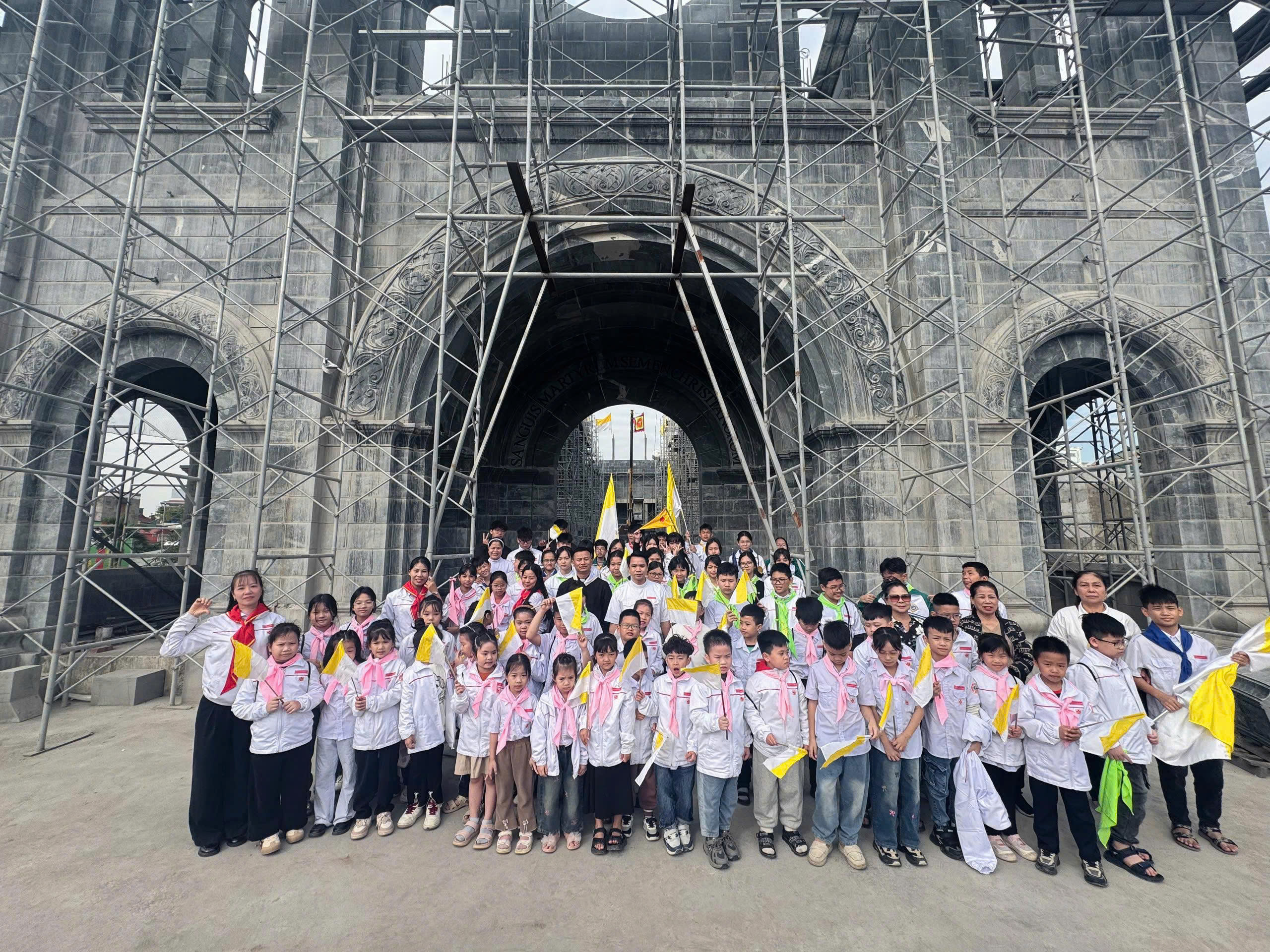 Bầu khí ấy như xua tan mệt mỏi và làm cho hành trình trở nên nhanh hơn. Đến nơi, các em liền vào tham quan ngôi Đền Thánh đang được xây dựng bằng đá. Sau đó, các em hiệp dâng Thánh lễ Quan thầy cùng Hiệp đoàn Giáo hạt Hải Dương. Tâm tình của ngày lễ đặc biệt không chỉ làm chuyến hành hương thêm ý nghĩa, mà còn củng cố nơi các em niềm hy vọng – niềm hy vọng của hành trình “Hiệp hành Chứng nhân” theo gương các anh hùng tử đạo trên chính mảnh đất thiêng này. Tinh thần ấy hôm nay được tiếp nối nơi các giáo lý viên, huynh trưởng và dự trưởng – những người đang dìu dắt các em bước theo Chúa.