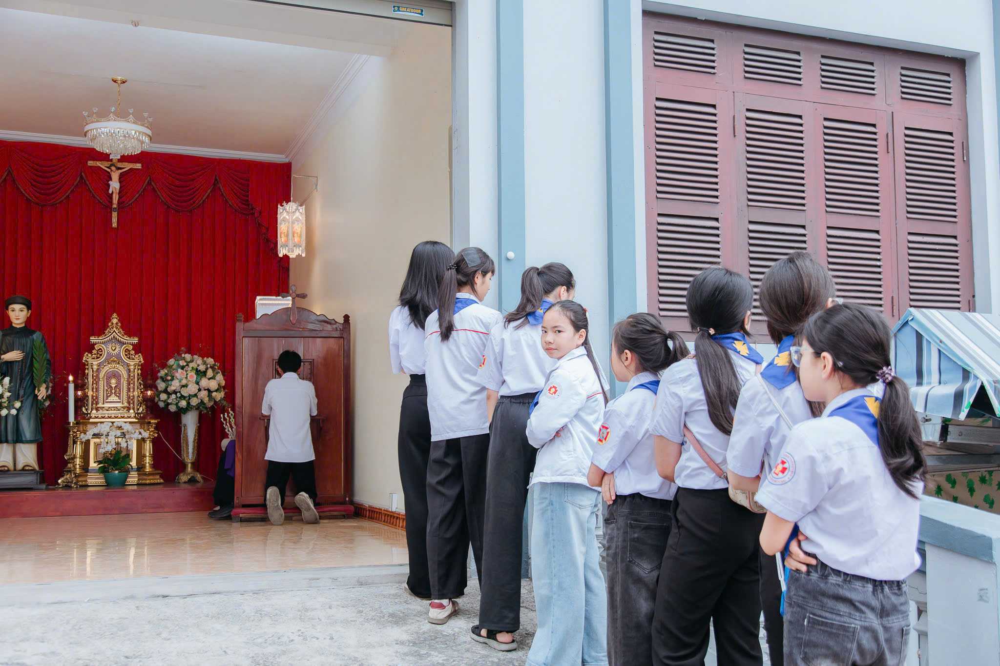 Trong ngày tĩnh tâm, các TNTT đã được quý sơ Phaolô giúp hồi tâm sám hối, lãnh nhận bí tích hòa giải, và lắng nghe cha xứ Giuse chia sẻ.