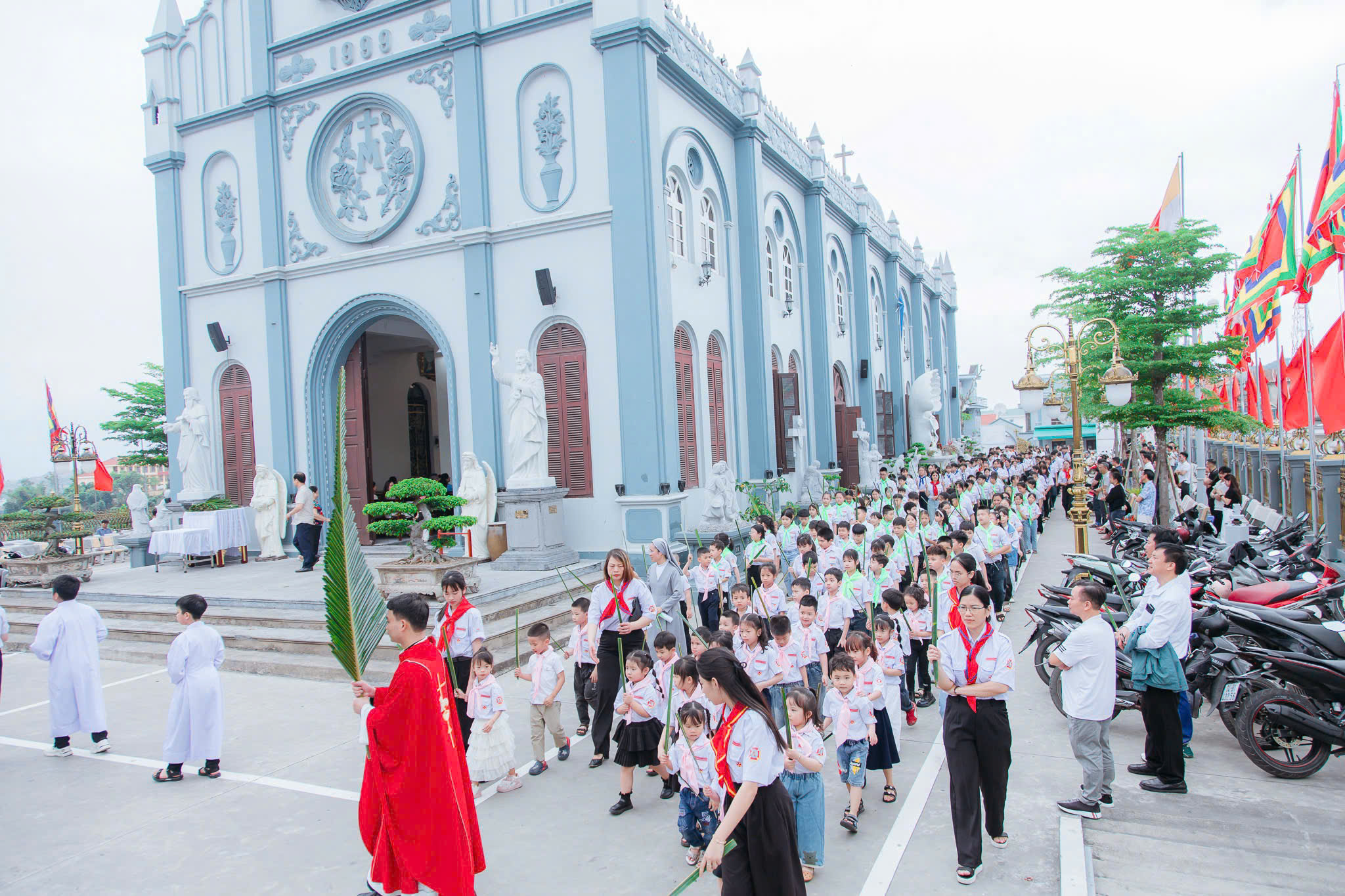 Sau đó, các em cùng cha phó Giuse cử hành cuộc rước long trọng và hiệp dâng Thánh lễ Lá khai mạc Tuần Thánh.