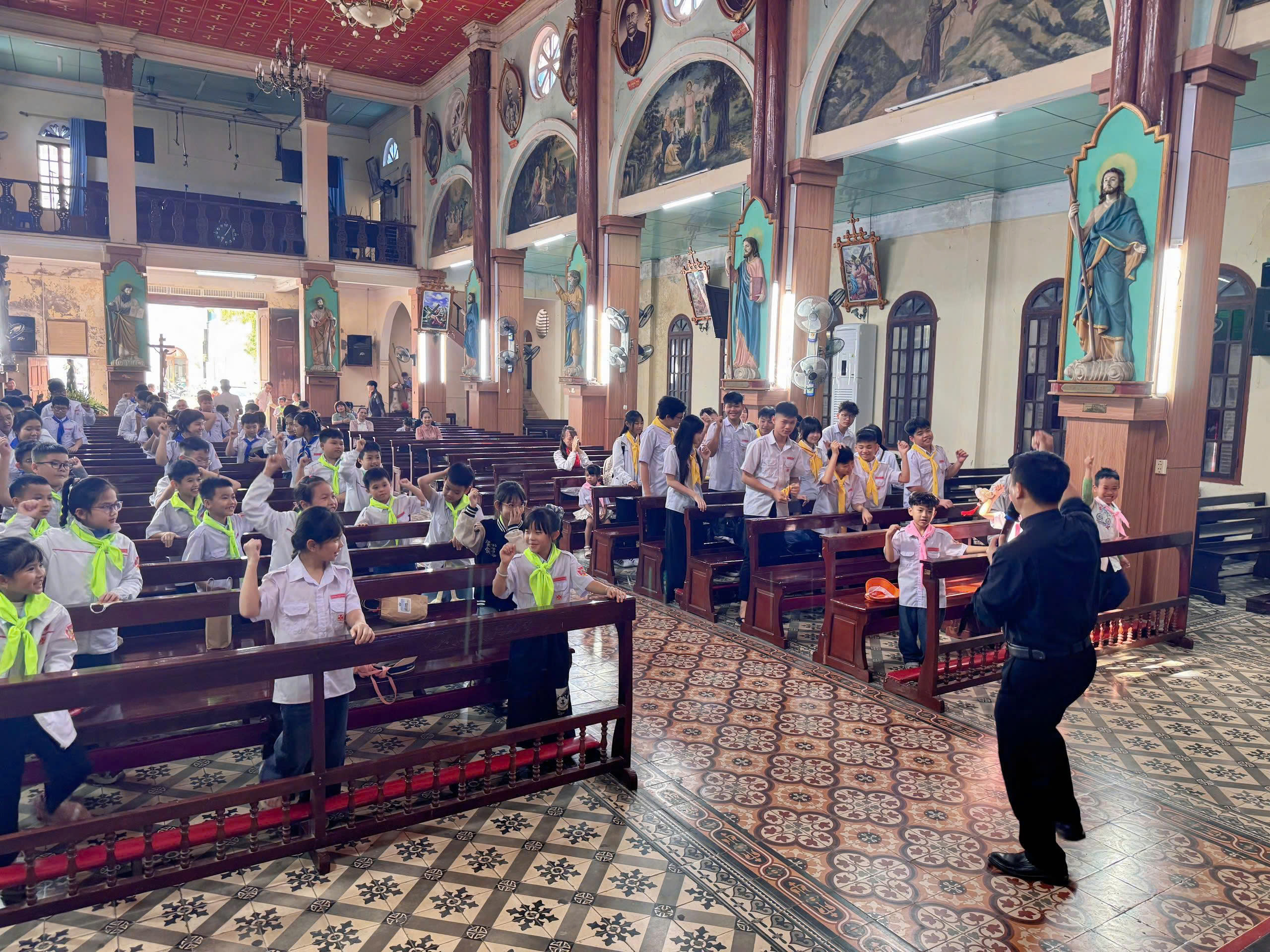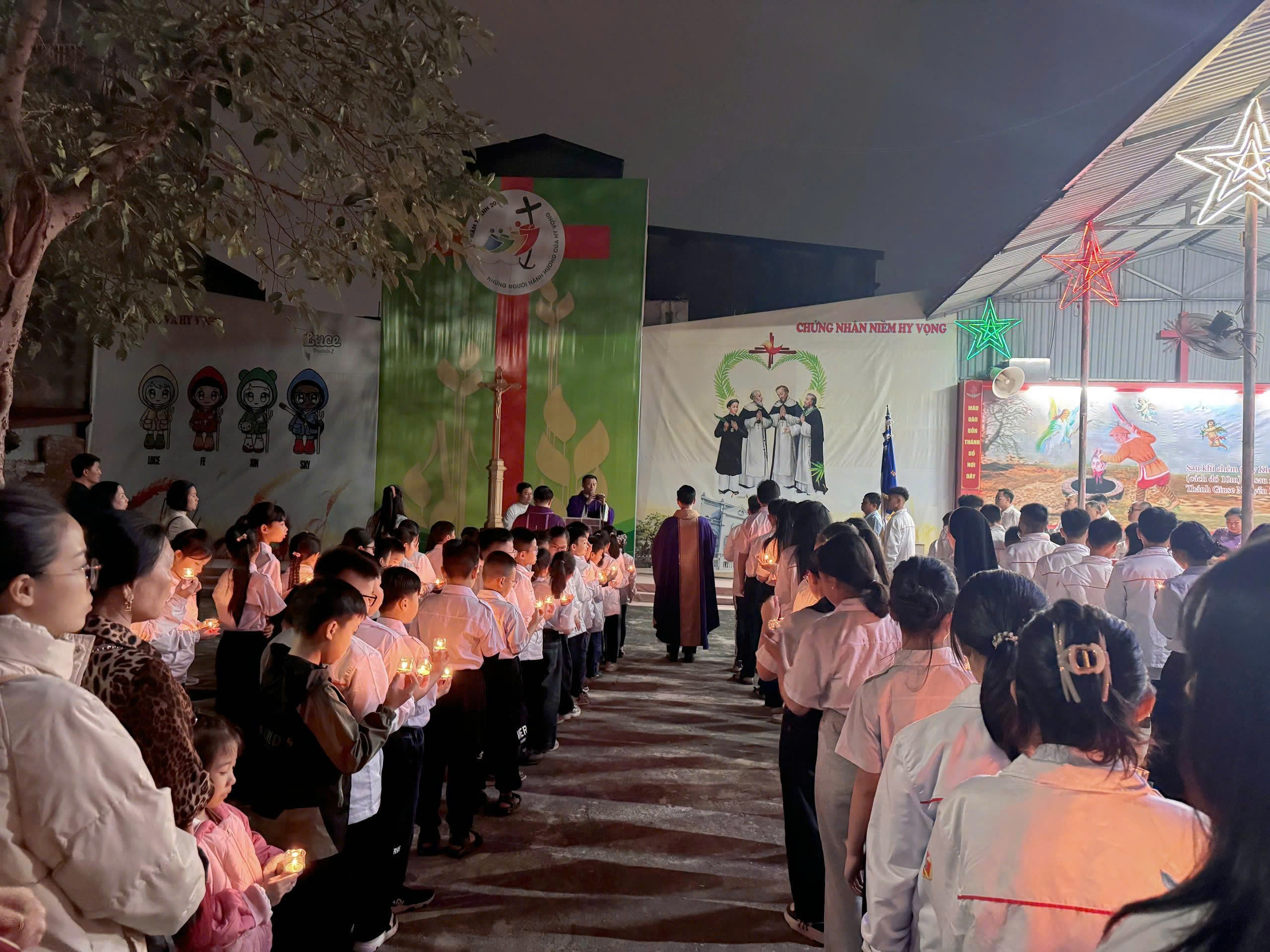 Sau một thời gian dài chuyên chăm học hỏi giáo lý, sinh hoạt phong trào và can đảm sống tinh thần Thiếu nhi Thánh Thể, tối thứ Bảy ngày 6 tháng 12, tại Đền Thánh Các Thánh Tử Đạo Hải Dương, các em đã long trọng cử hành nghi thức nâng khăn – dấu mốc quan trọng trong tiến trình trưởng thành của mỗi đoàn sinh.