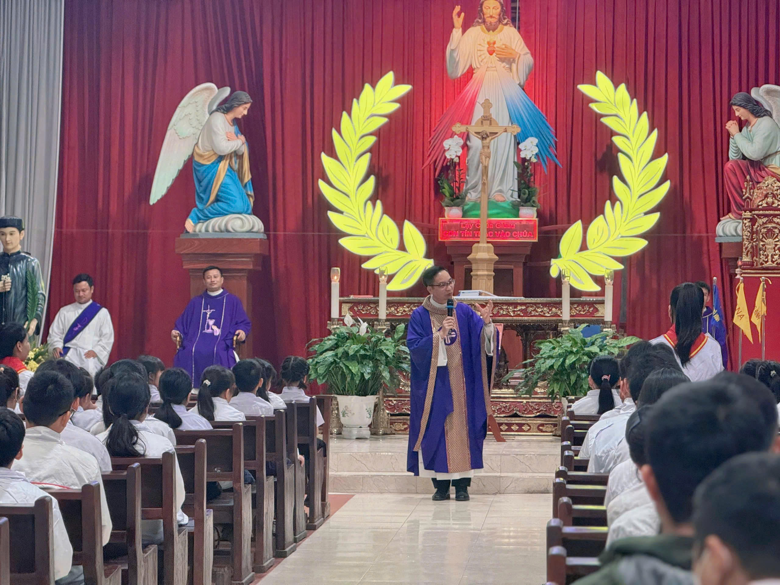 Trước khi kết thúc Thánh Lễ, Cha xứ Giuse Nguyễn Văn Vang thân tình nhắn nhủ các em sống tinh thần trách nhiệm, hiệp hành chứng nhân, biết noi gương Thánh quan thầy để khơi nguồn hy vọng nơi môi trường gia đình, giáo xứ và học đường.