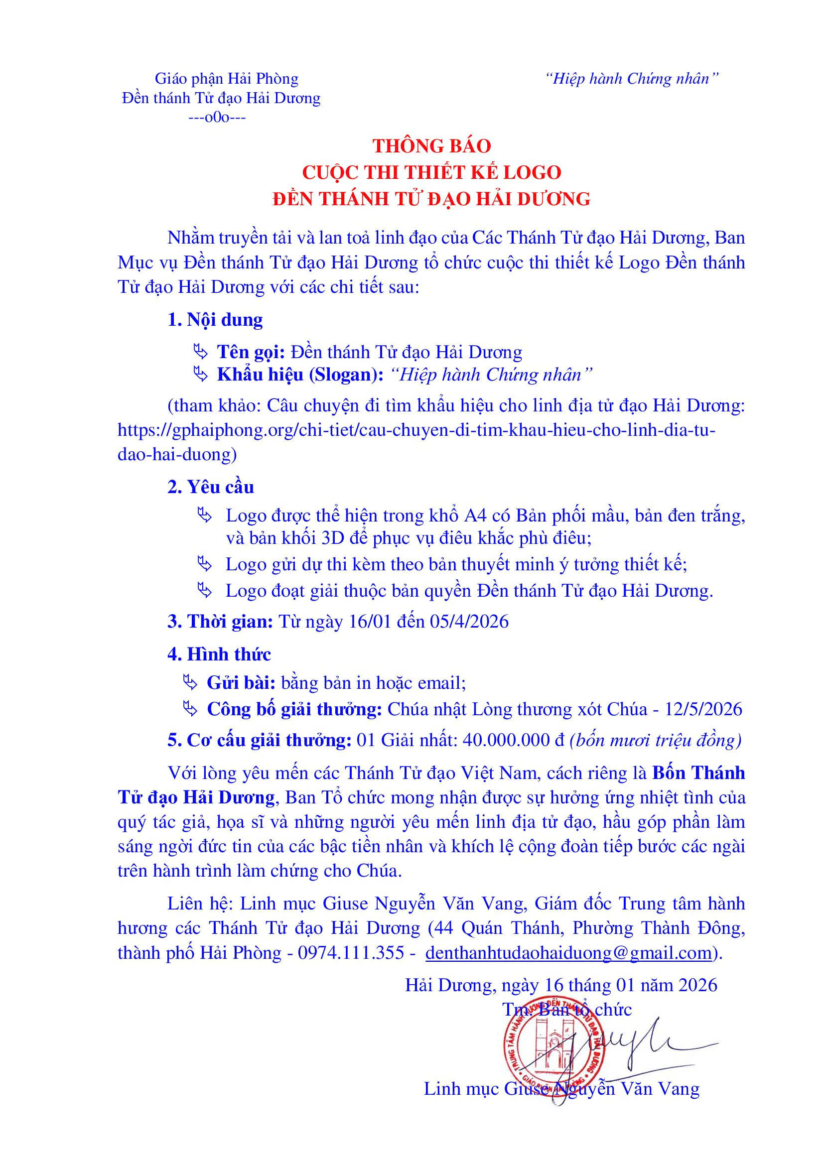 Thông báo cuộc thi thiết kế Logo Đền Thánh Tử Đạo Hải Dương