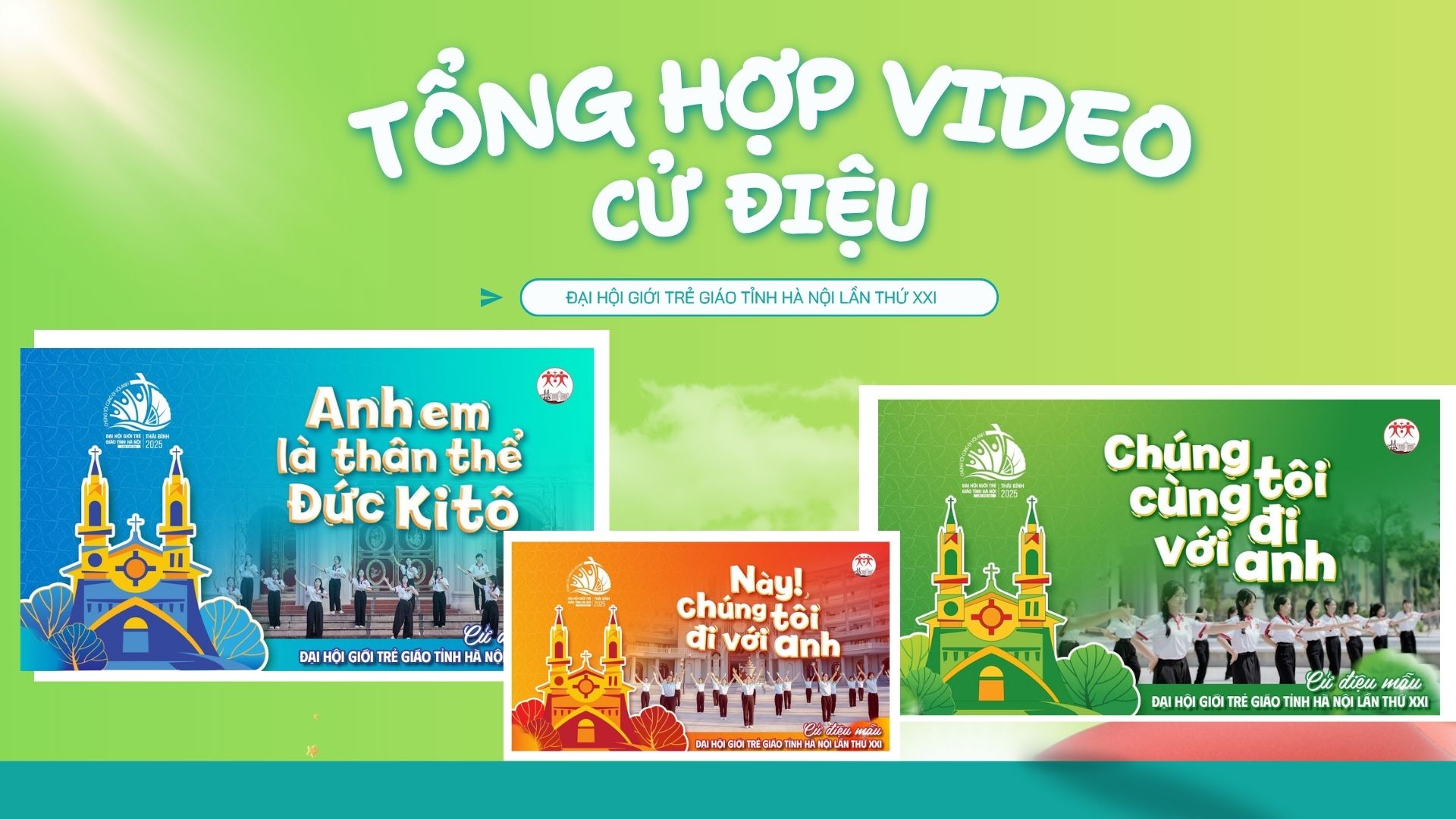 Ban Biên Tập xin gửi tới cộng đoàn những video cử điệu nổi bật tại Đại hội Giới trẻ Giáo tỉnh Hà Nội lần thứ XXI, được tổ chức tại Giáo phận Thái Bình với chủ đề “Chúng tôi cùng đi với anh” (Ga 21,3). Những tiết mục sôi động này góp phần nuôi dưỡng đức tin, khơi dậy tinh thần hiệp hành và giúp người trẻ sống trọn vẹn hơn trong kỳ Đại hội sắp tới.