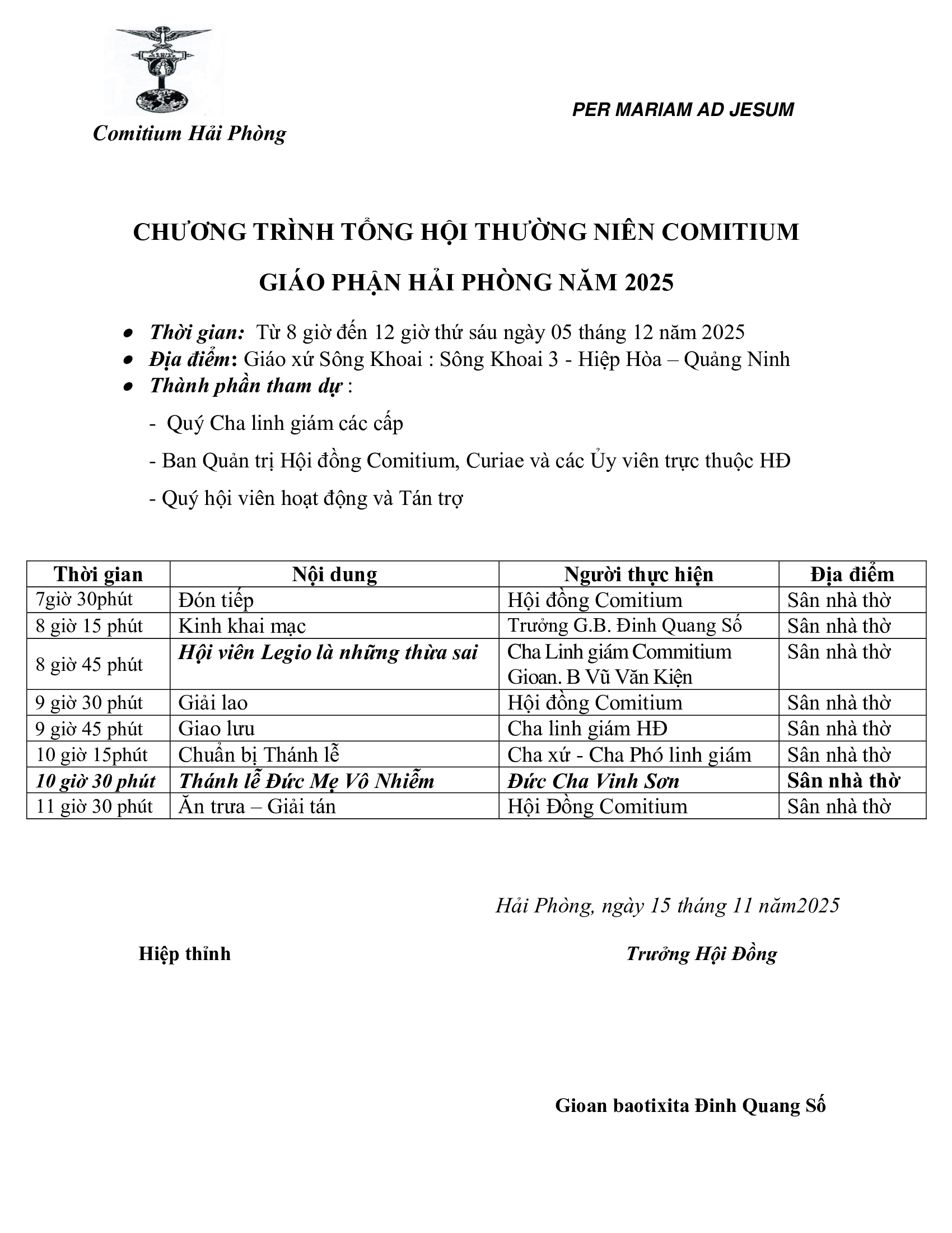 Trực tuyến: Tổng Hội Thường Niên Comitium–Giáo phận Hải Phòng 2025 | Giáo xứ Sông Khoai – 05.12.2025