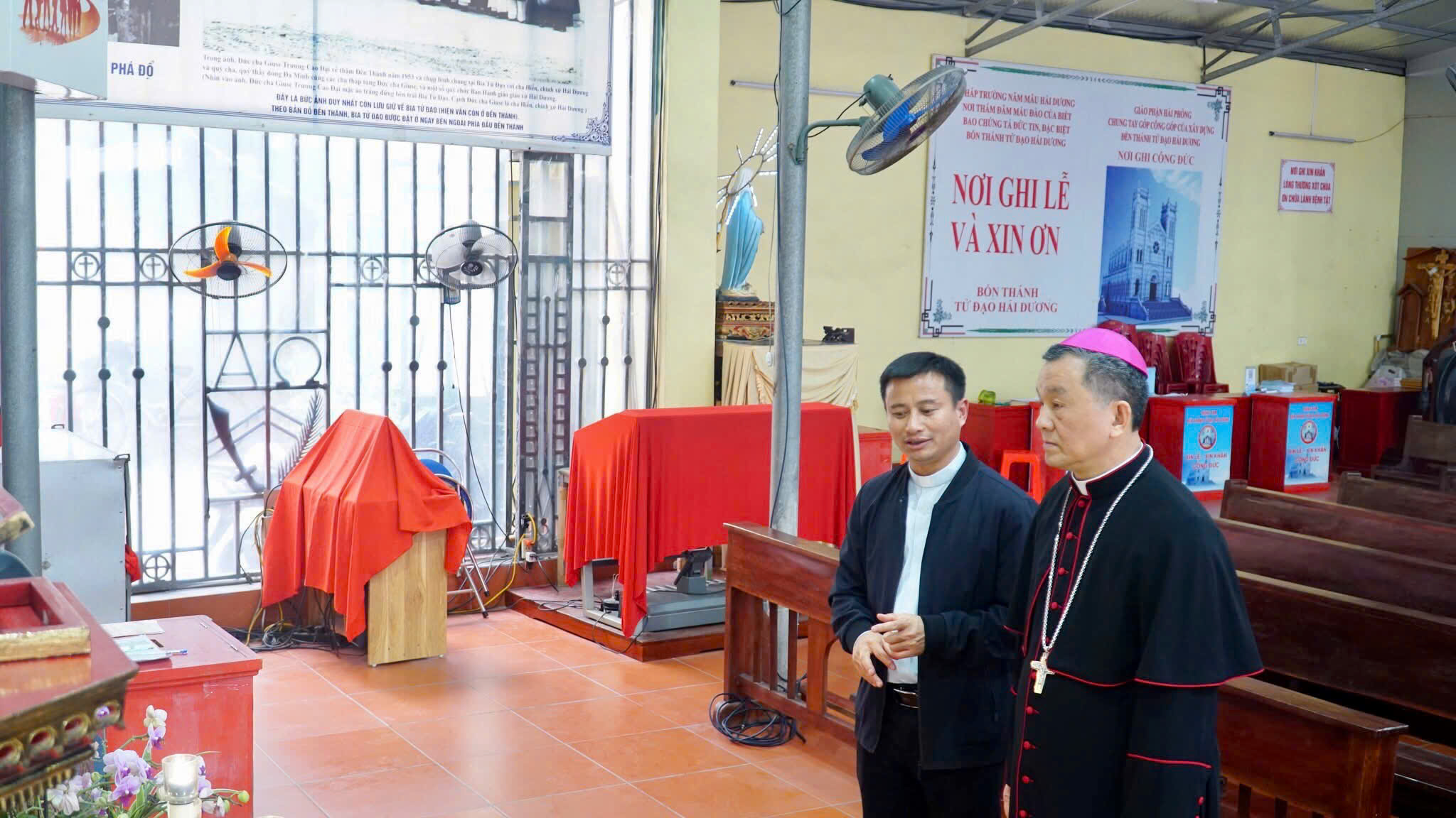 Đức cha cho biết ngài đã nhiều lần nghe nói về Đền thánh Hải Dương và ước mong có ngày đến viếng thăm. Và ngày ấy chính là hôm nay – Mồng Ba Tết, ngày thánh hoá công ăn việc làm. Phải chăng đó cũng là dấu chỉ hy vọng cho công việc tái thiết Đền thánh được thánh hoá, được Chúa chúc lành trong năm mới này!